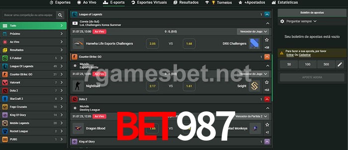 O bet987 oferece uma grande seleção de opções de apostas em e-sports com probabilidades competitivas